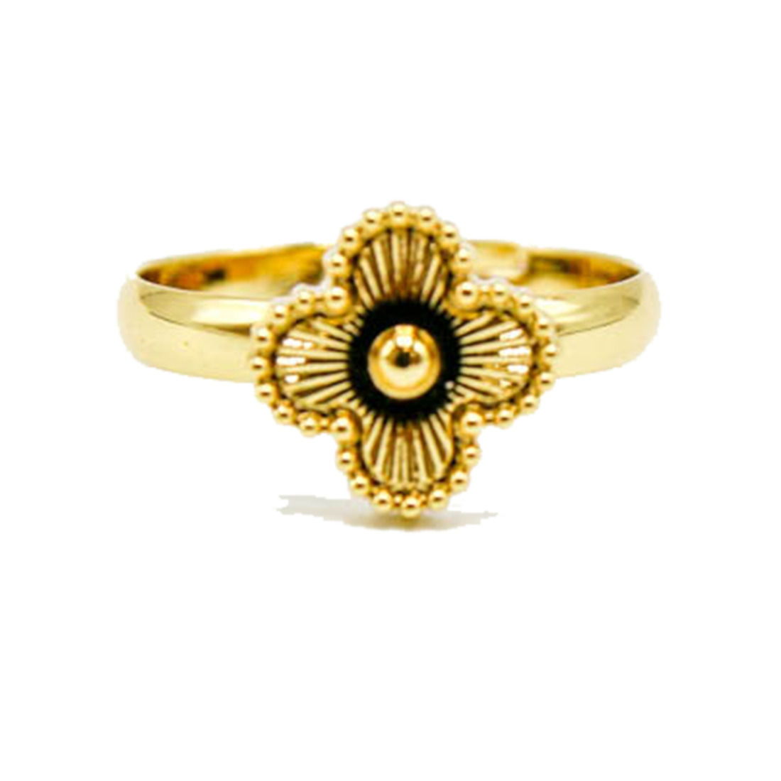 Gold-Plated Stainless Steel Ring with Black Clover Design