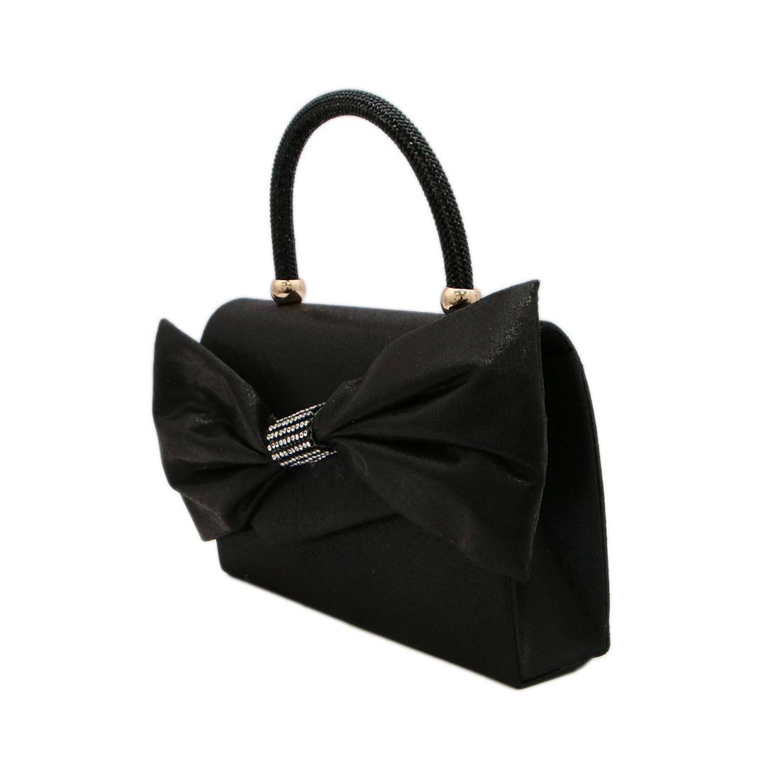 Textured evening clutch with shimmer finish.