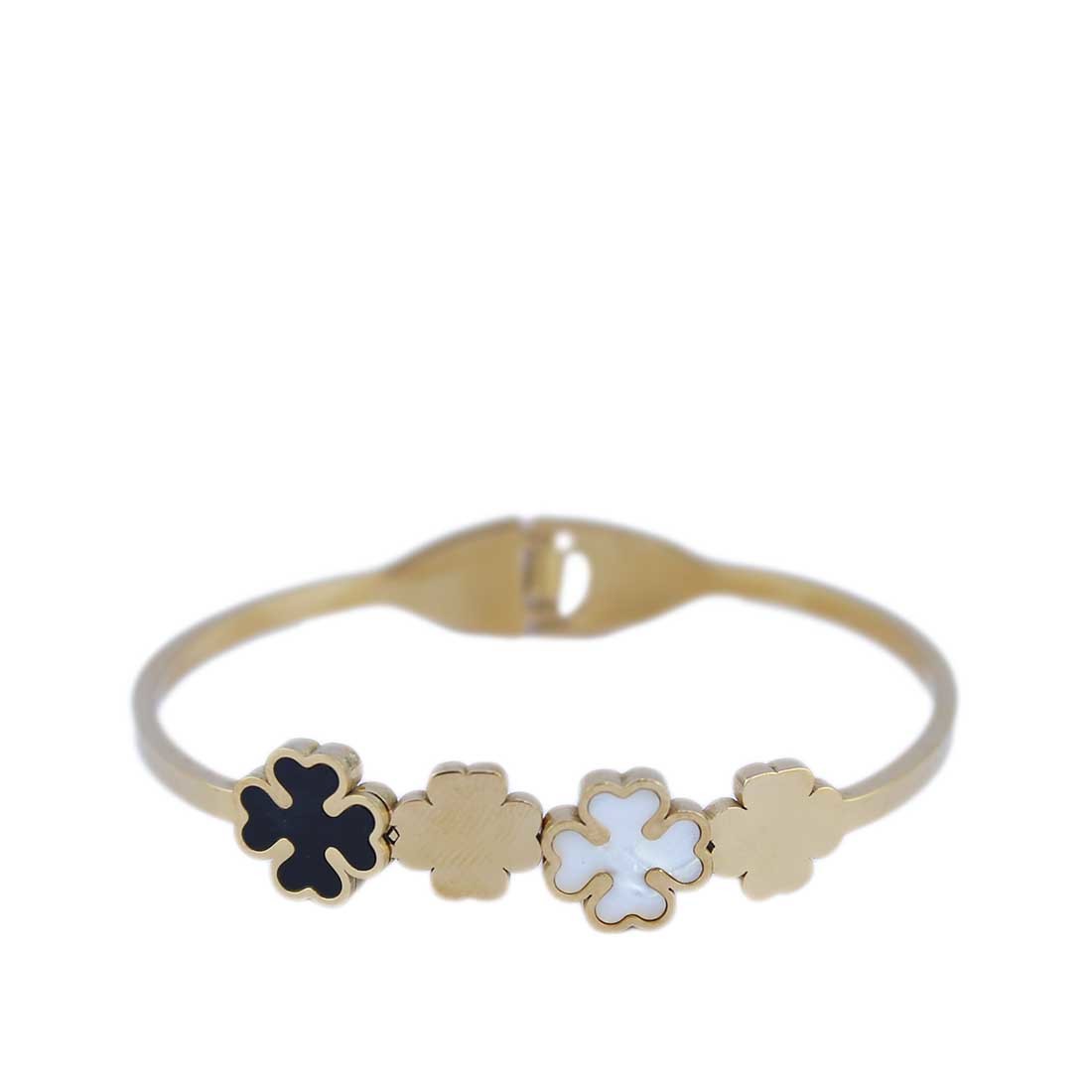 Gold-Plated Stainless Steel Bracelet with Black Clover Charms