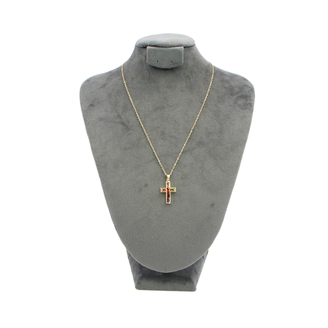 Gold stainless steel cross pendant with multicolor stones