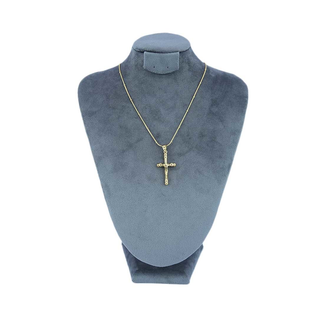 / Gold-toned chain necklace with a cross pendant.