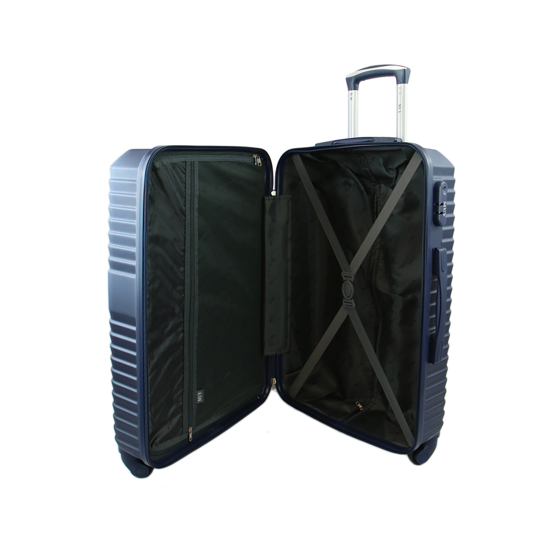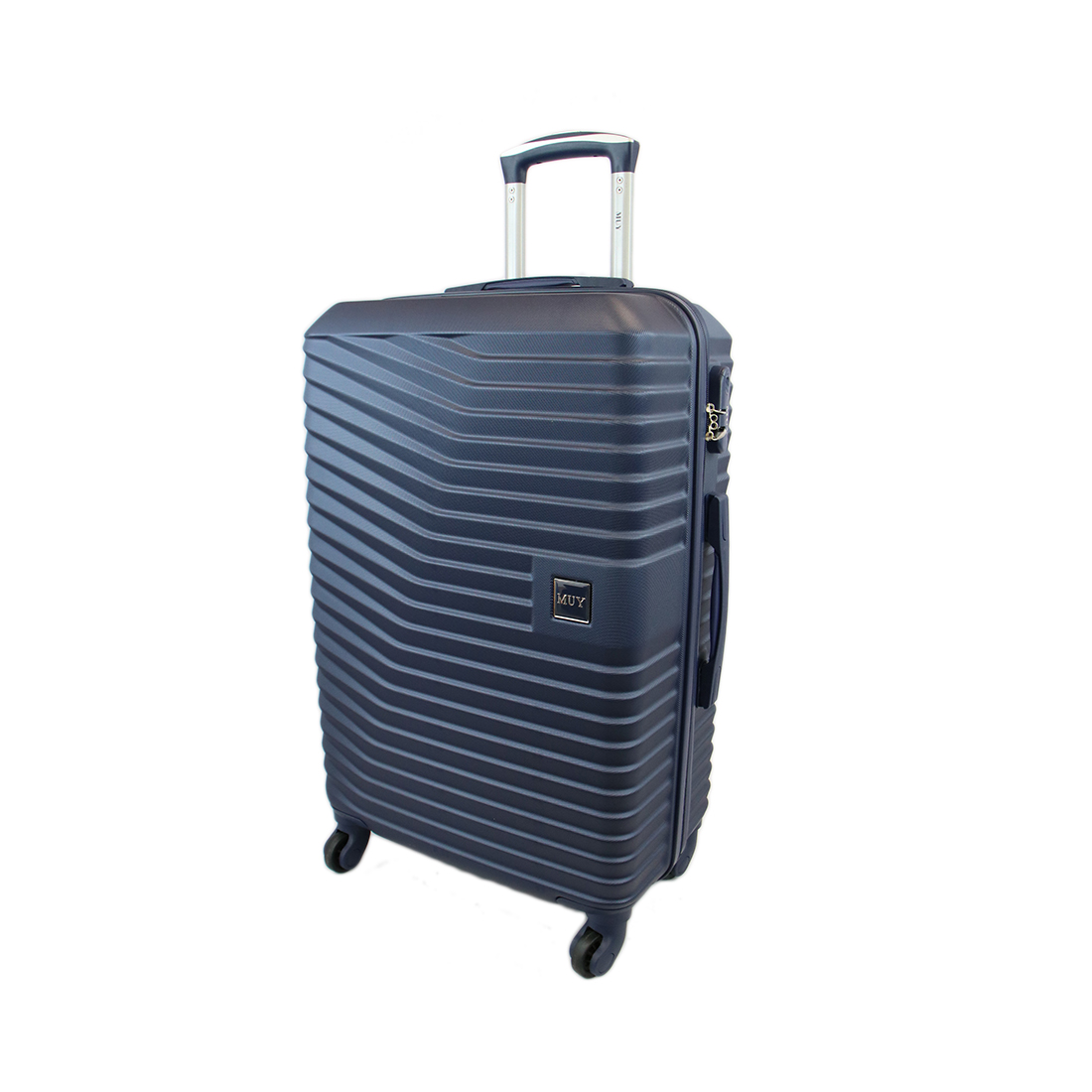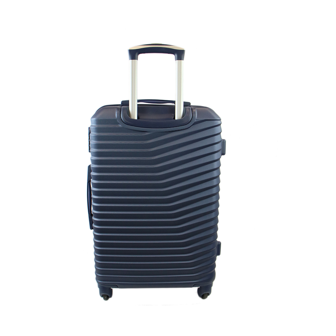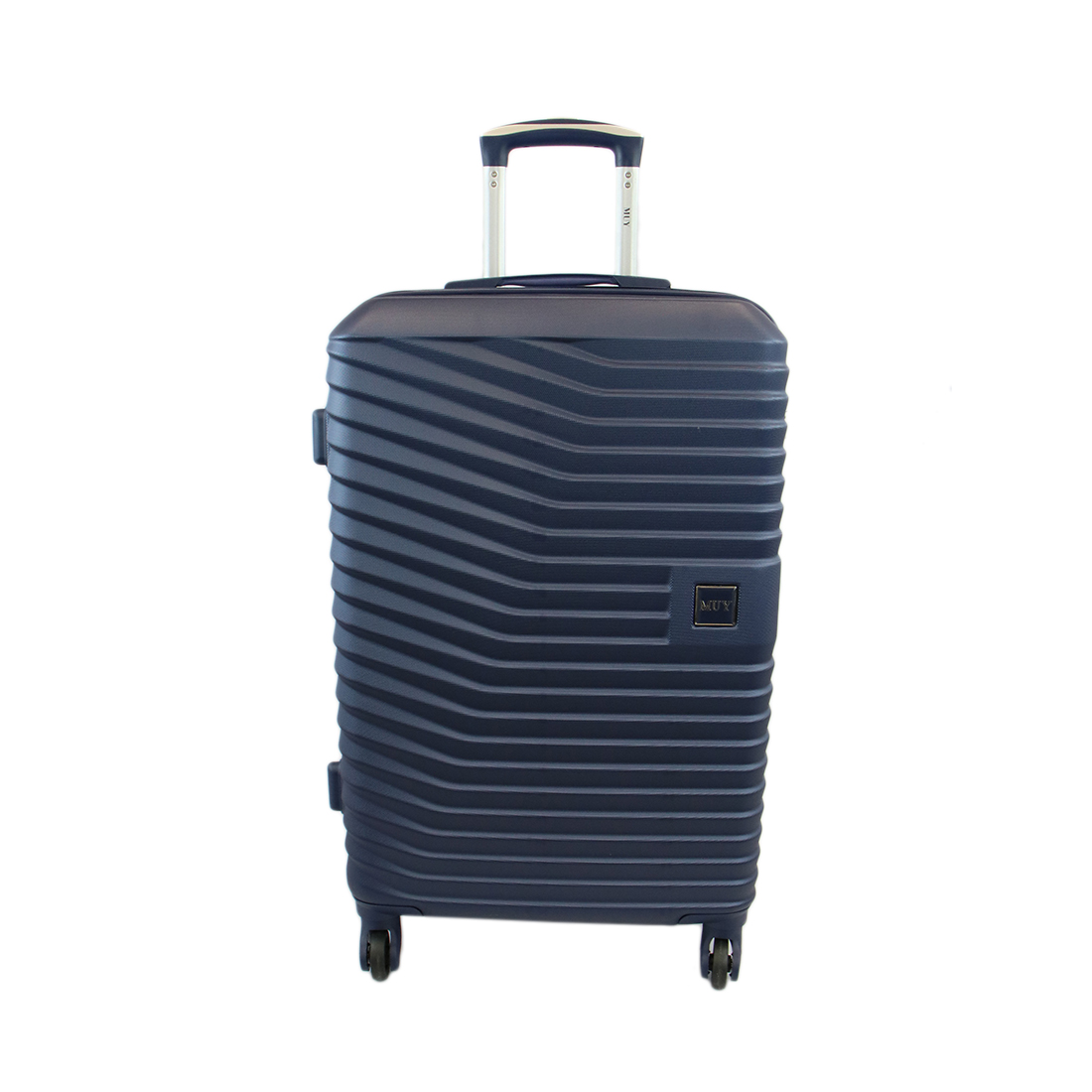 Hard shell Luggage with striped texture and smooth spinner wheels.