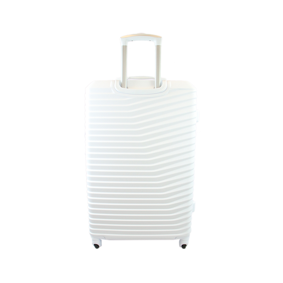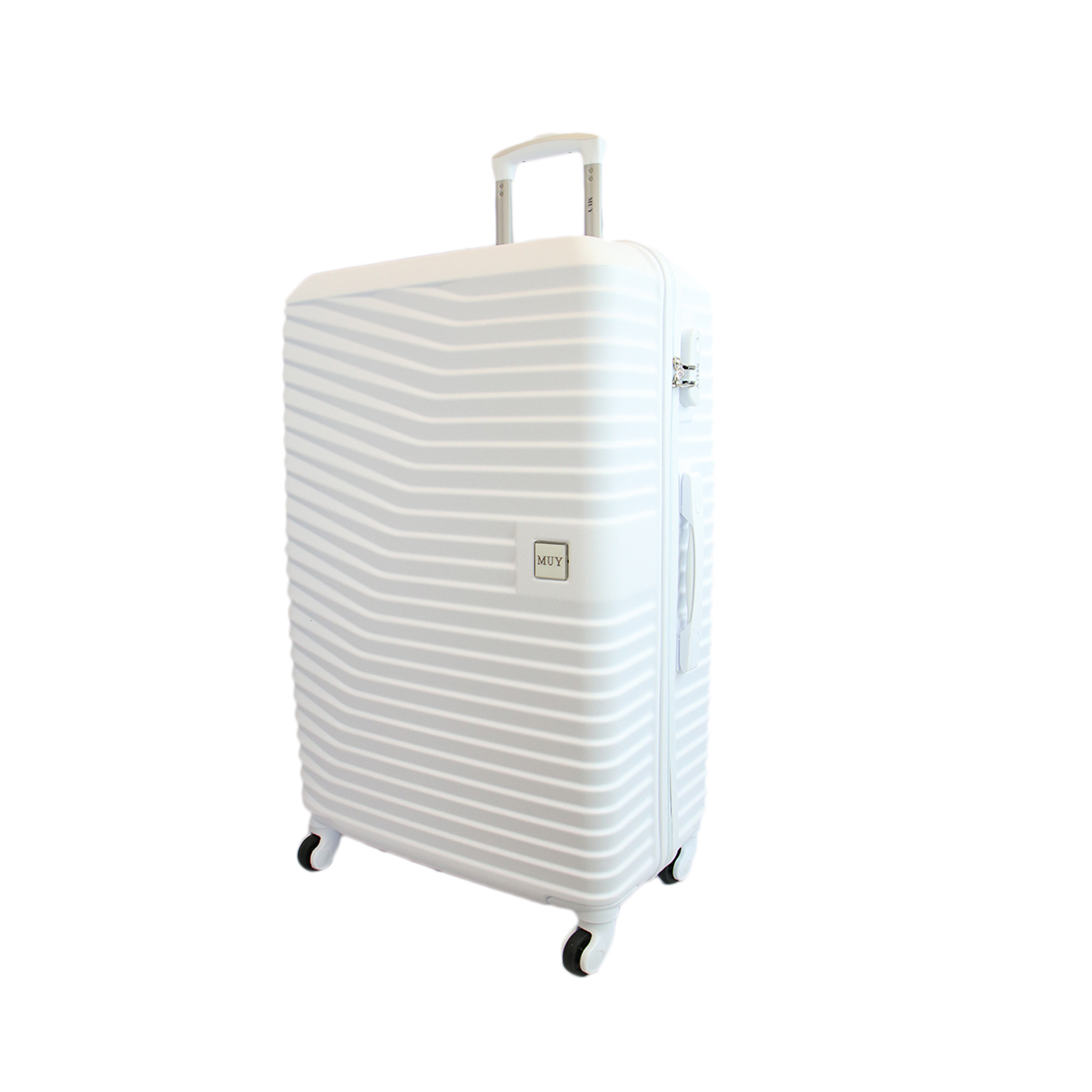 Hard shell luggage with ribbed design and smooth 360 spinner wheels for easy travel.