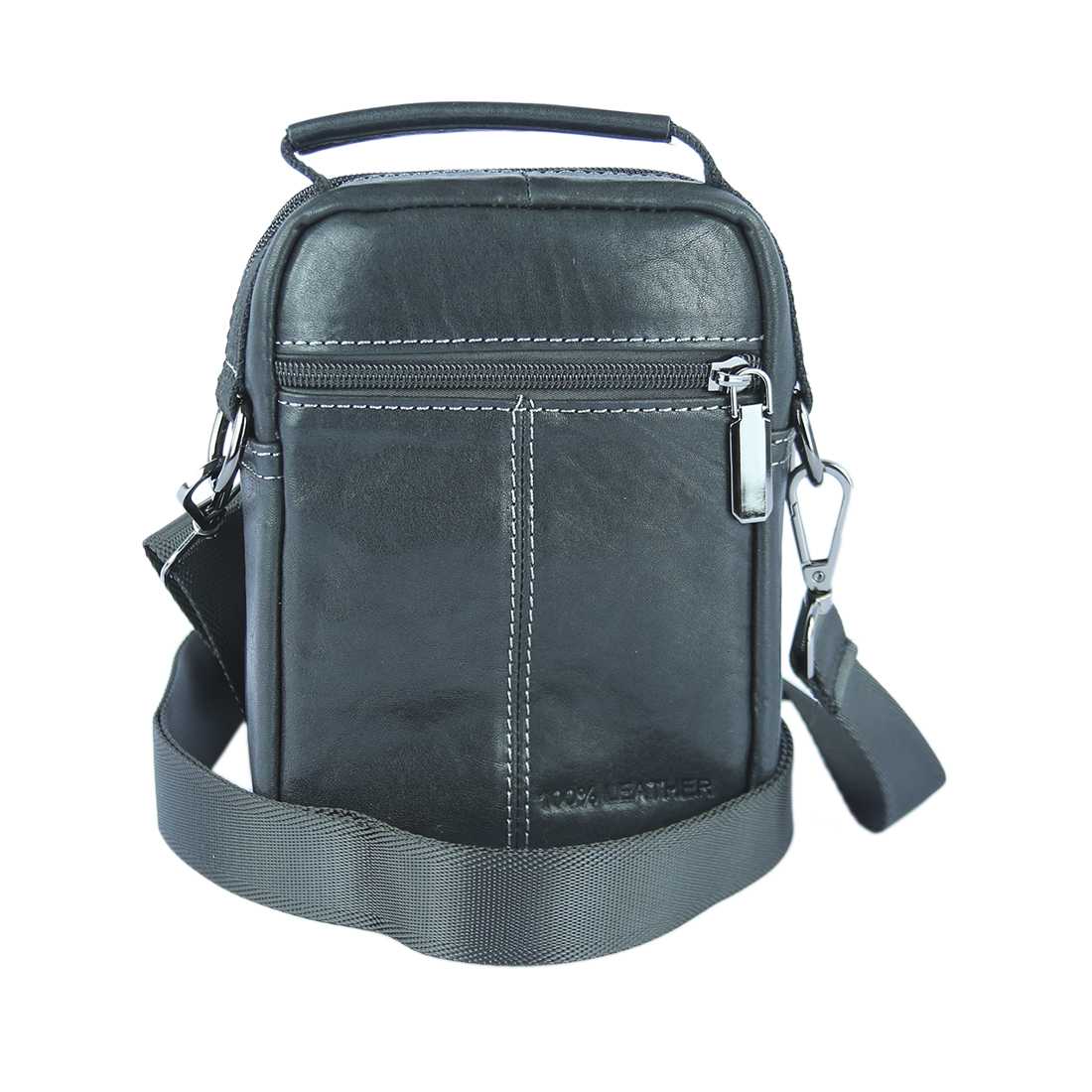 Real leather compact shoulder bag with contrasting stitching