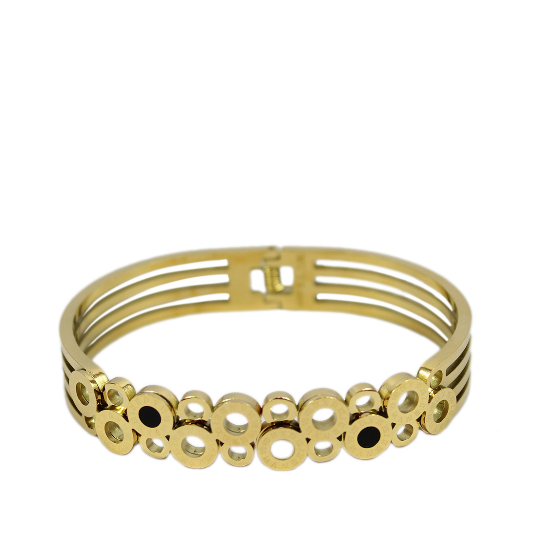 Gold-Plated Stainless Steel Bracelet with Black Round Accents