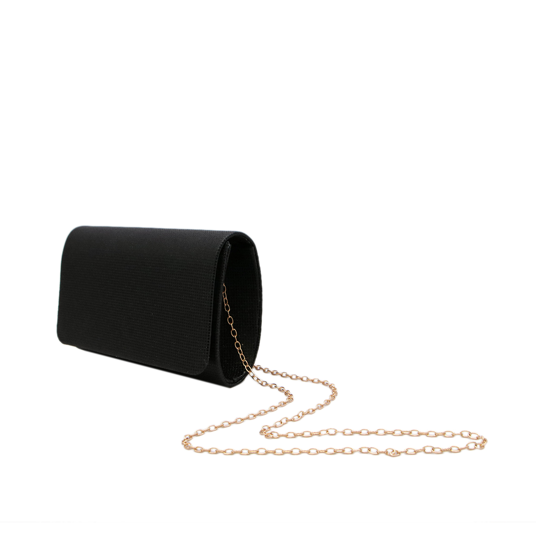 Textured evening clutch with flap closure.